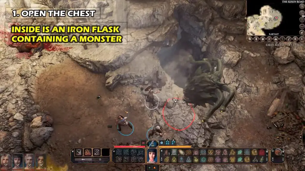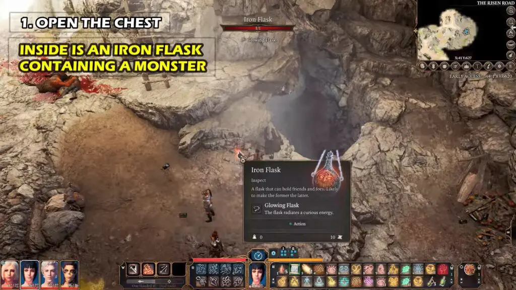 If you choose to open the chest, then you will find an Iron Flask. This Iron Flask is sealed with a brass stopper containing a Monster.