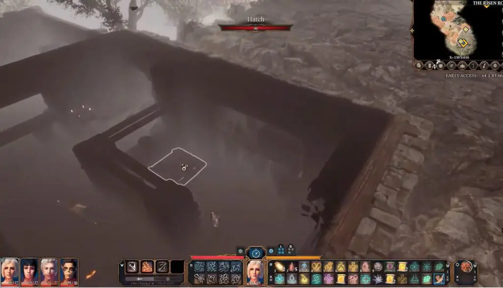 Inside, talk to the guard and give him the password, and you’ll get the key to the hatch leading to the basement.
