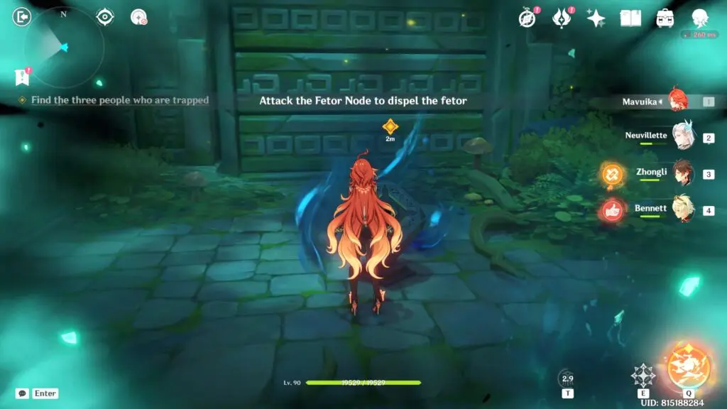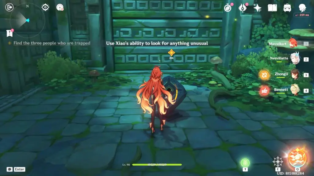 To locate the missing person, players must utilize Xiao’s unique ability to spot the Fetor Node and then clear the Fetor to release the Rattan Figures. Finally, capture all these Rattan Figures. Tap the button at the bottom of your screen to activate Xiao’s ability. This will reveal traces of fetor around the Fetor Node.