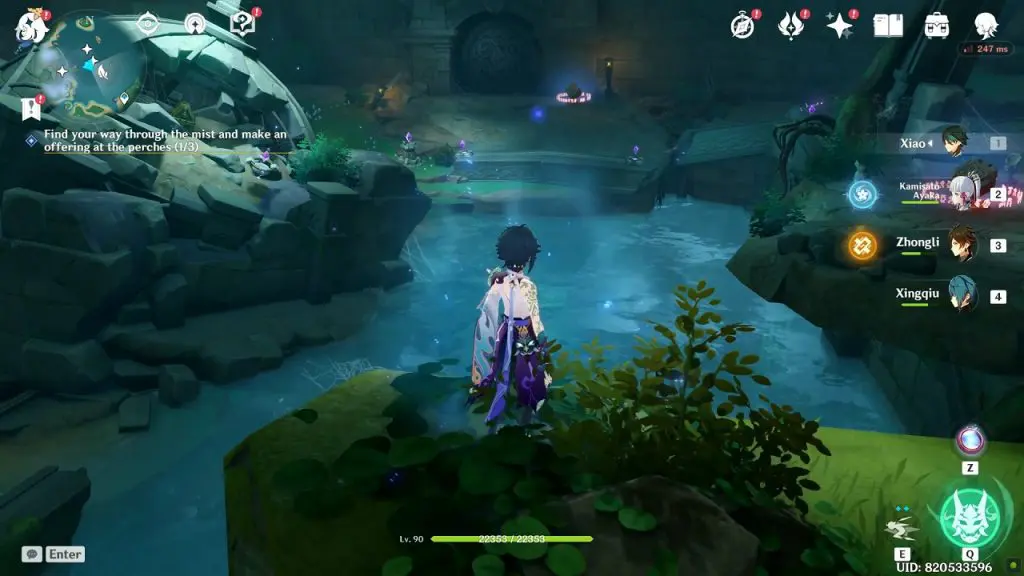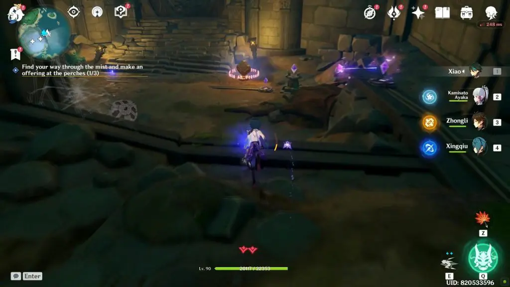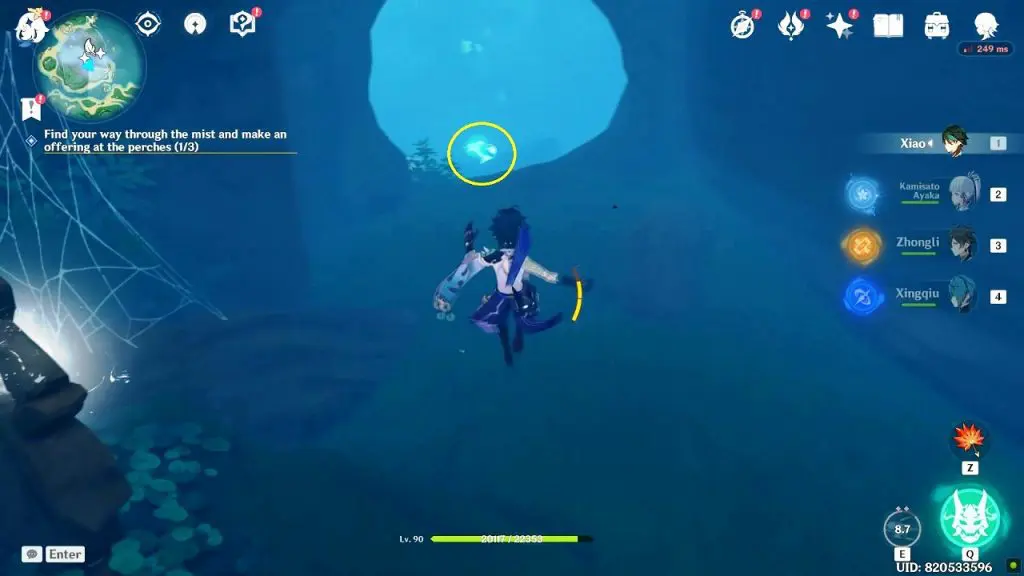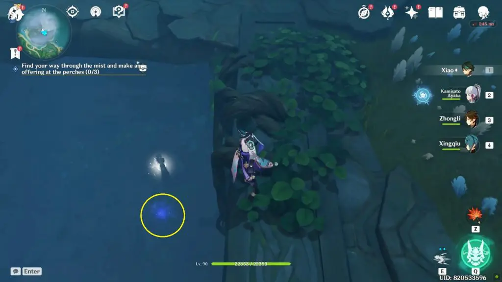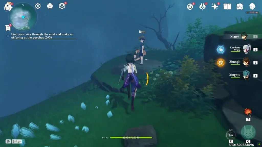 Talk to Ruu at the north portion of Chirai Shrine at the location shown below. The Perch Tree is near Ruu. Touch the perch to start the offering process.