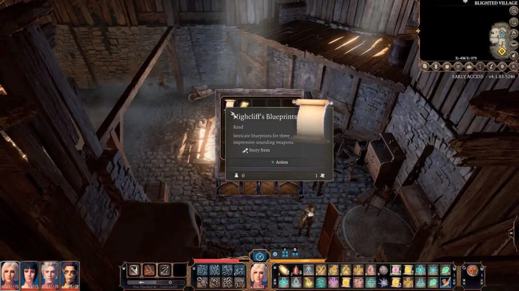 Enter the house and descend into the basement. There is a wooden trunk wooden chest containing Highcliff’s Blueprints.