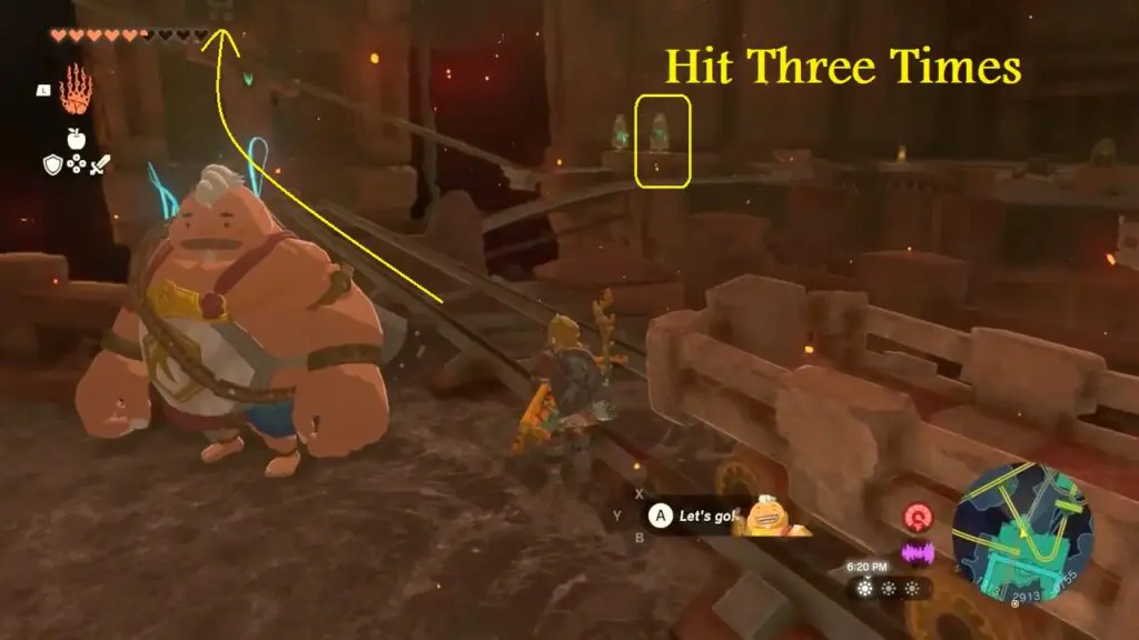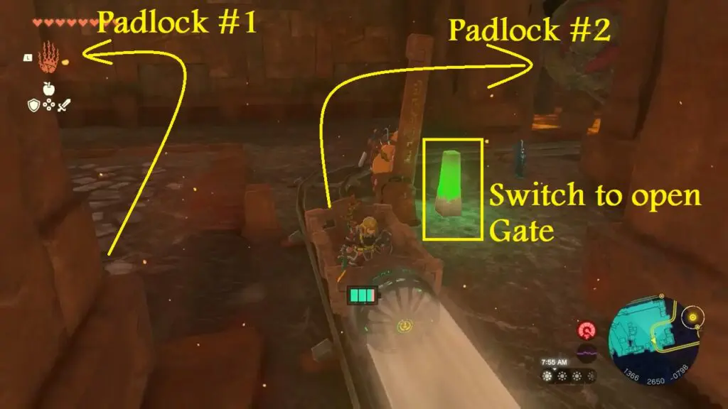 To open the fire temple you need to strike these gongs using Yunobo’s rolling attack. Our next objective is to locate and unlock all five padlocks.
