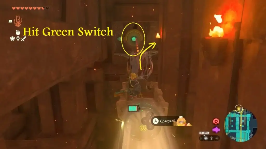 Inside the room, use Yunobo’s Charge attack to hit the first padlock.