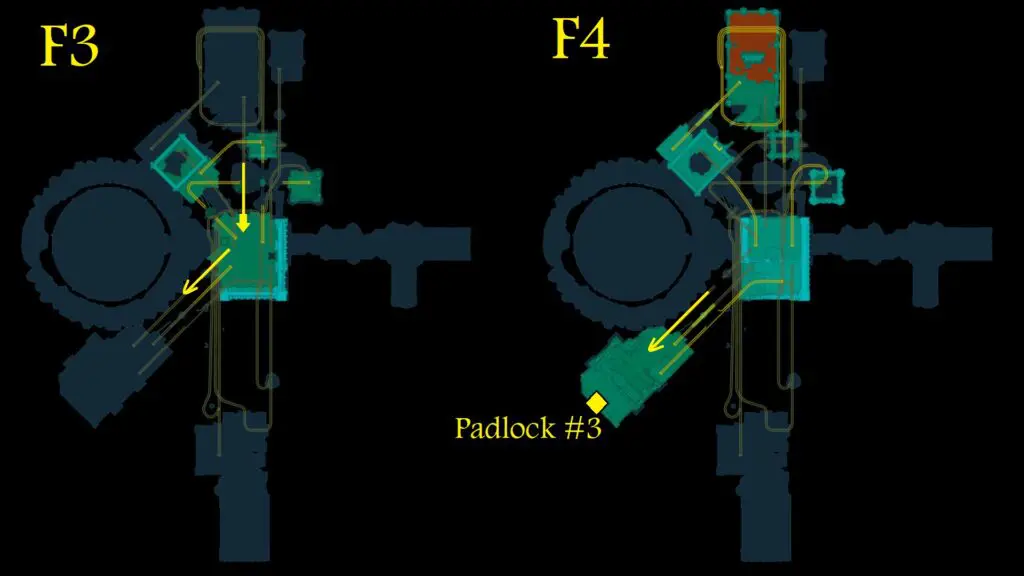 Stand on the box and employ your recall ability to reach the upper floor on F4. This room contains Padlock #3.