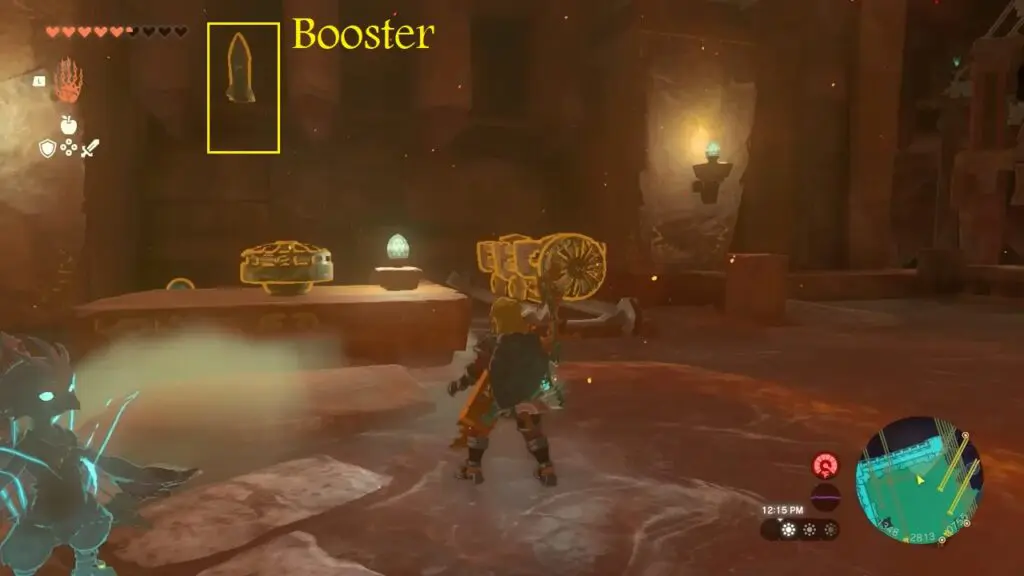 Defeat the enemy at F3 level and acquire a booster (rocket) located on the wall. Attach the booster in front of the cart, ensuring that it faces forward, and place a fan at the back.