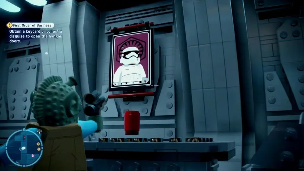 Go to the location marked as ‘D’ on the map. Destroy the boxes in the corner and use the fallen bricks to build a console. Use the console and a disco light will descend down from the roof. All the Stormtroopers in the area will start dancing and this will complete the challenge. Make sure that some Stormtroopers are there in the room so that they can dance to complete the challenge.