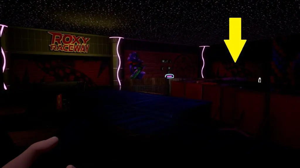 Once Freddy is fully upgraded, go to the Roxy Raceway and go through the door as shown in the pictures below. This door is near the location where you got the Robot’s Head in Roxy’s Weakness mission.