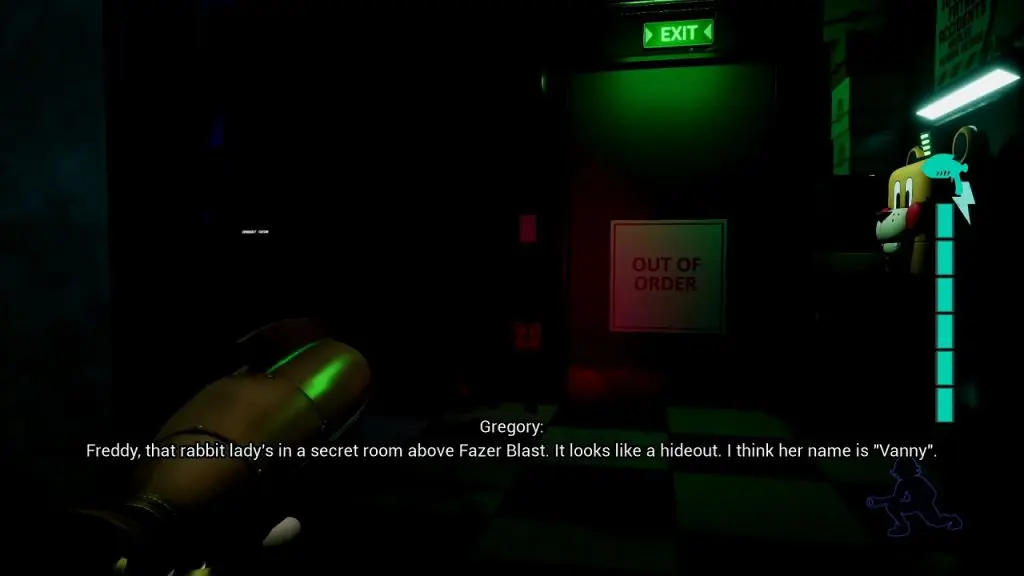 This will initiate a cutscene. After the cutscene, you will find yourself in the Fazerblast. Go straight ahead in the door in front of you. Proceed in the path and it will lead you to Vanny’s Lair. Press the button in Vanny’s Lair as shown in the picture below. This will initiate the worst ending.