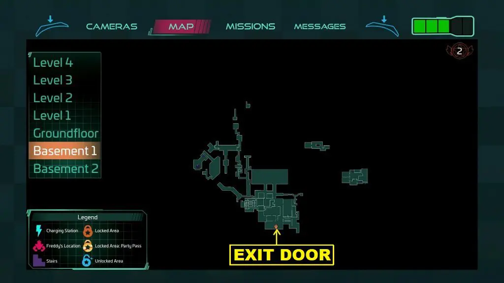 Go to the Pizzaplex front door at 6 AM and choose to stay instead of leaving. Then proceed to obtain a Level 7 Security Pass. After that go to the Loading Docks in Basement 1. Go through the Exit Door near the Loading Docks Controls as shown in the pictures below to initiate this ending. This ending is wholesome but you won’t be able to solve the secrets of the Pizzaplex.