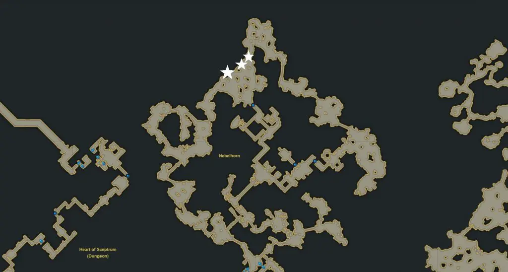 Use triport to travel to the Oasis located on the northwestern side of Nebelhorn. At the oasis investigate at three different locations. These investigations will reveal abnormal levels of temperature. I have marked the location on the map below.
