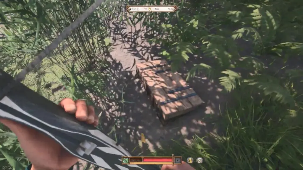 Beneath this birch tree, a wooden chest is buried. However, the chest is locked, and you’ll need a key to open it. The key can be found inside a bird’s nest perched among the branches of the birch tree.