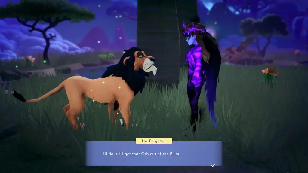 Once you have successfully completed the Forgotten Memories: Trust quest, talk to the Fairy Godmother at the last gateway to start the quest. After passing through the gateway, go and talk to Scar, who is standing just in front of the pillar.