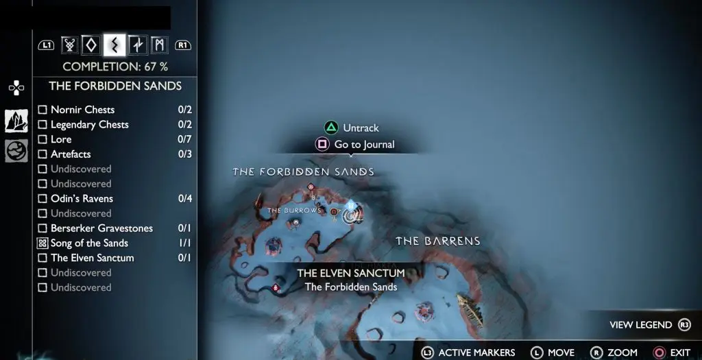 The treasure is also in The Forbidden Sands. Head west from the Elven Sanctum as marked on the map. Climb up the wall to find the treasure on the right side of the ground as shown in the pictures below.