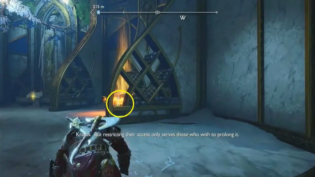 Go inside and climb up the ledge to reach the upper level of the Elven Sanctum to find the lore on a shelf as shown in the pictures below.