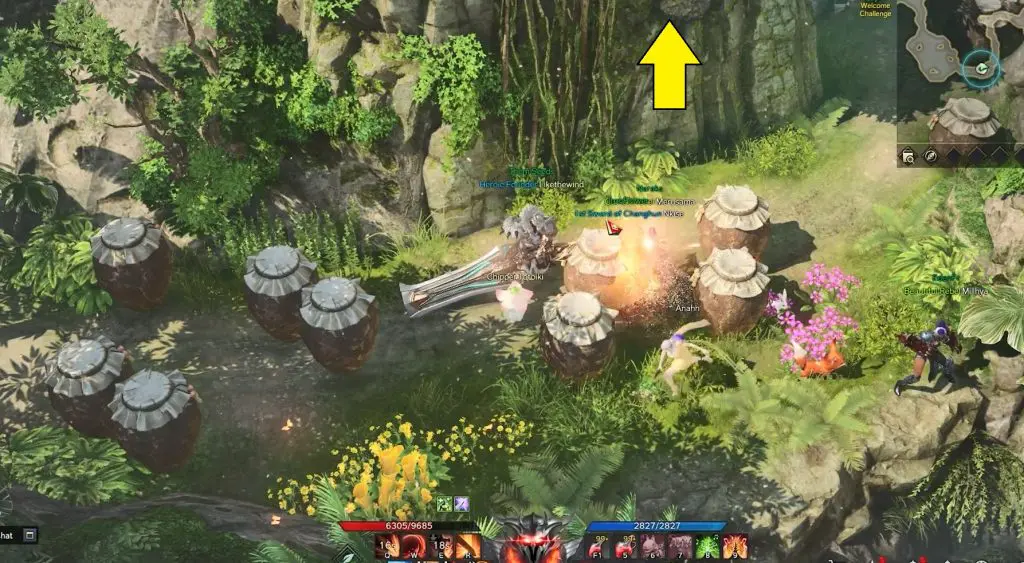 In order to climb those vines, you’ll need to break a golden jar that spawns in the cluster of jars near the vines. Normally, golden jar spawns every 10 mintues. Once the golden jar is broken, you’ll be able to interact with the vines and climb up the cliff.