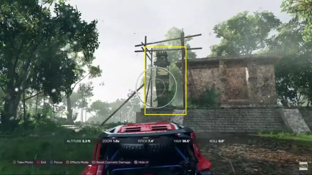 - Jade statue: It is located in the northwest corner as shown on the map. Open photo mode (press Up on the D-pad on the controller) and have the statue in the frame to take the picture.