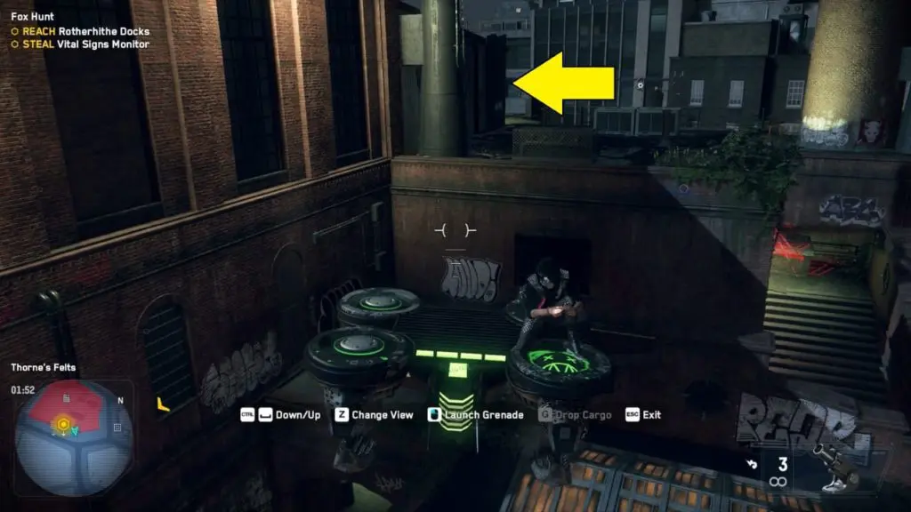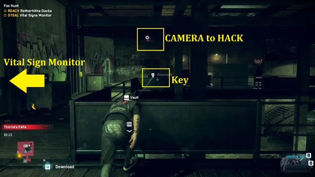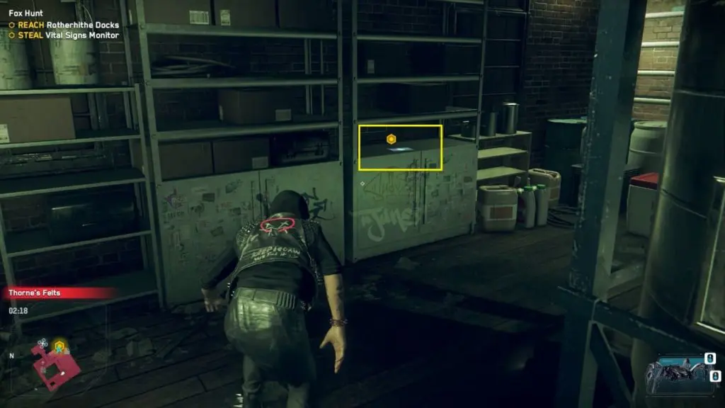 Your next objective is to steal Vital Sign Monitor (tablet) from Thorne’s Felts without getting into a fight. Thorne’s Felts is located in the City of Westminster District. The hostile area is heavily armed.
