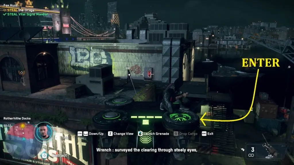 Head to the St. Thomas Hospital located in the western part of Lambeth District. Your next aim is to access the hospital database from the ctOS server. ctOS server is located on the roof of the hospital. You can use Wrench’s drone to reach the roof. While you’re on the drone, send the multidrone to hack the ctOS server.
