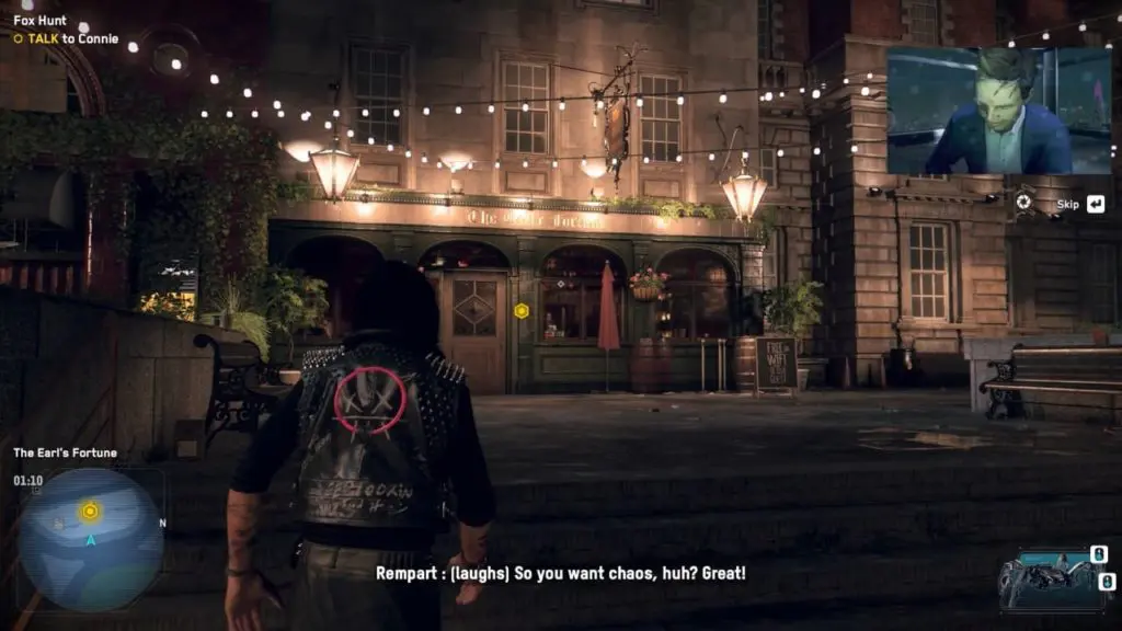 Your goal is to get information about places where you can get medical supplies for Aiden. Connie Robinson knows a few locations. You can find Connie Robinson inside The Carls’ Fortune pub located in the central part of the ‘City of Westminster’ District. Interact with her to get coordinates of the medical supplies locations.