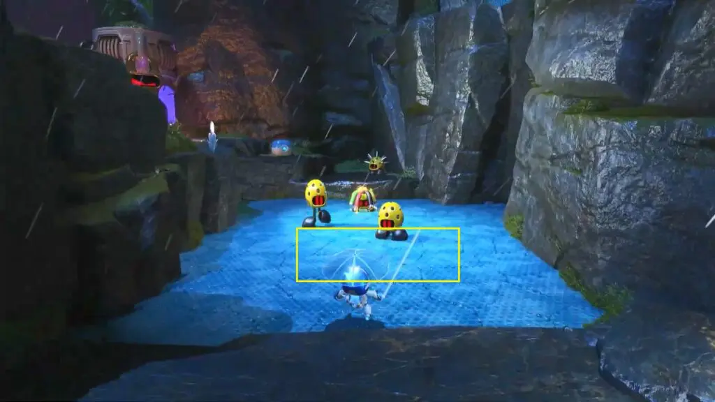 The first Bot can be found at the start of the area. Look to your right to spot the Bot standing on a ledge next to a slime enemy.