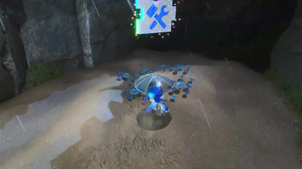 Look for an X symbol in the sand near the previous hut. Use a Spin Attack to dig into the ground and rescue the Bot.