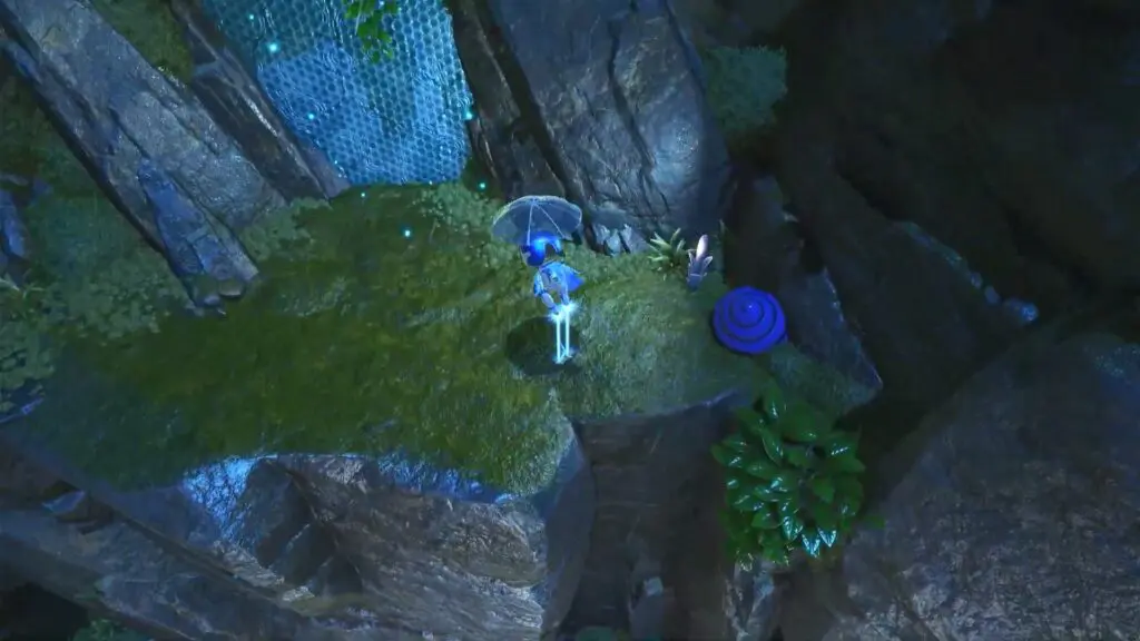 Follow the path along Big Brother’s arm to reach the shell tower. Climb up the tower until you spot a blue breakable floor. Break it and enter below to find a Bot.