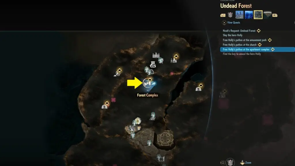 To begin freeing Holly’s Pathos, travel to the Apartment Complex located in the Undead Forest. Approach this area from the west side and activate the Mistle there.