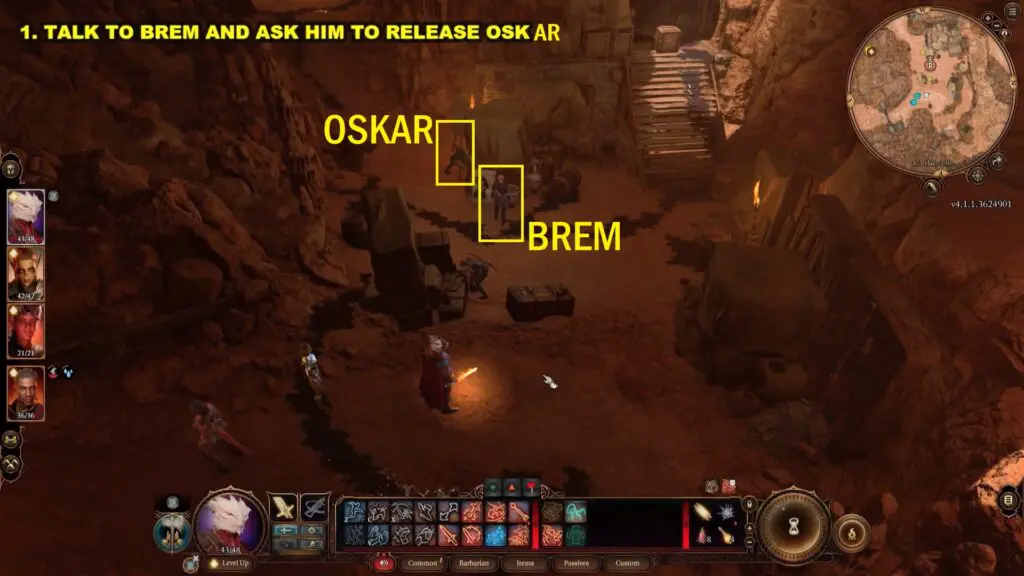 Head to the Zhentarim hideout. First, talk to Brem and select the option “pet artist“. Then ask her to free Oskar. You can pay 1000 coins for his freedom or use [intimidation] or [persuasion] to force Brem to hand over Oskar to you for free.