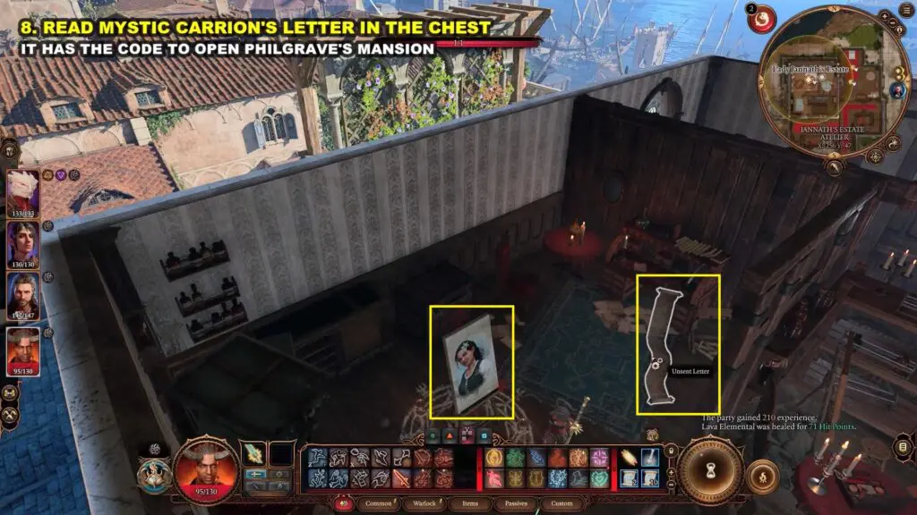 Pick up Oskar’s painting and place it on the Easel in the Atelier. This will cause the wooden wall to slide open, revealing another picture. Go to the freshly opened room and read the Mystic Carrion letter to learn that Oskar was in love with someone else and had requested the Mystic Carrion’s assistance.