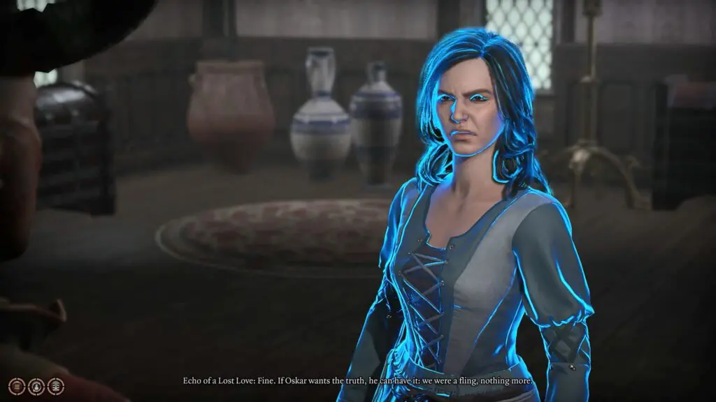 Return to Lady Jannath’s chamber. Upon entering, the spirit will be anger towards Oskar and want his demise to unite in the spirit realm. Your task involves persuade her to stop this and let him go.