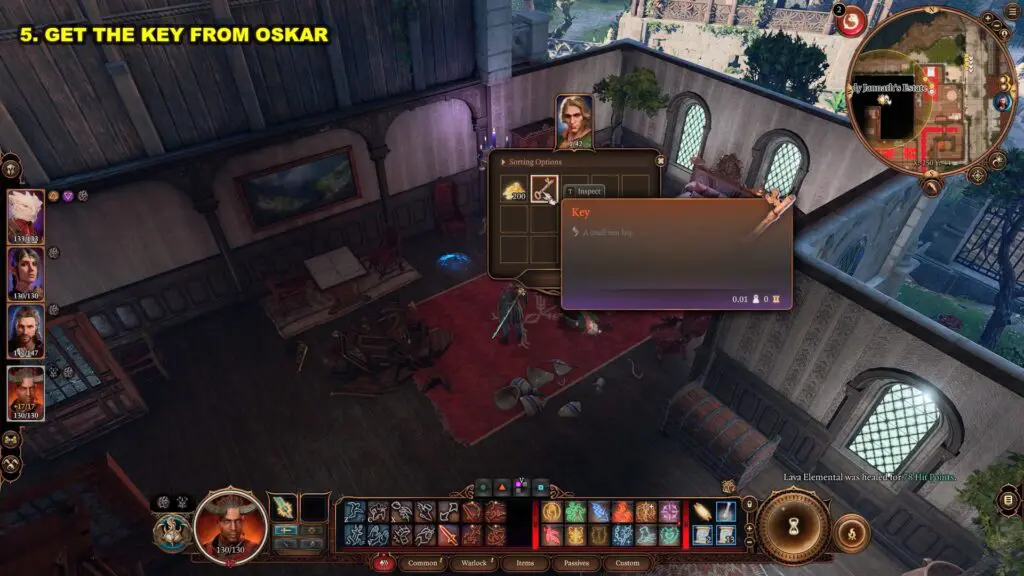 Here you must utilise non-lethal strikes against Oskar to subdue him. Collect the small iron key from Oskar.