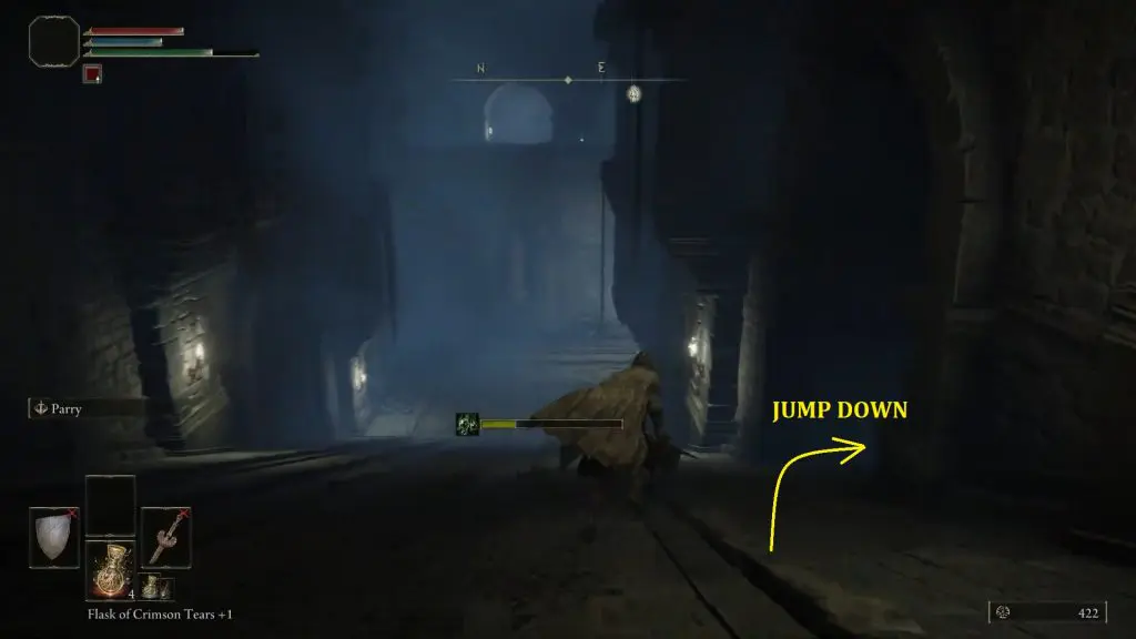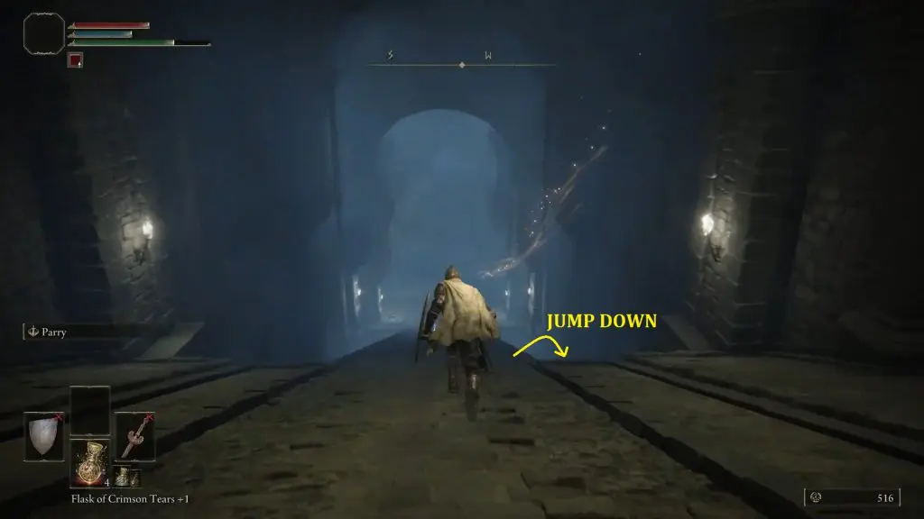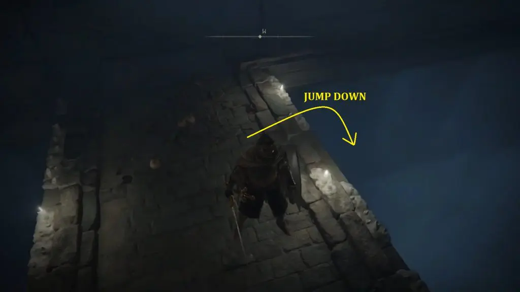 After collecting the Talisman, jump down from the left side of the bridge as shown below.