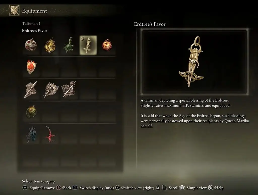 The path behind the machine will lead you to an area with a bridge. Cross the bridge to pick up Erdtree’s Favor Talisman. Here you will have to defeat two tough enemies. The talisman raises Maximum HP, Stamina, and Equid Load.