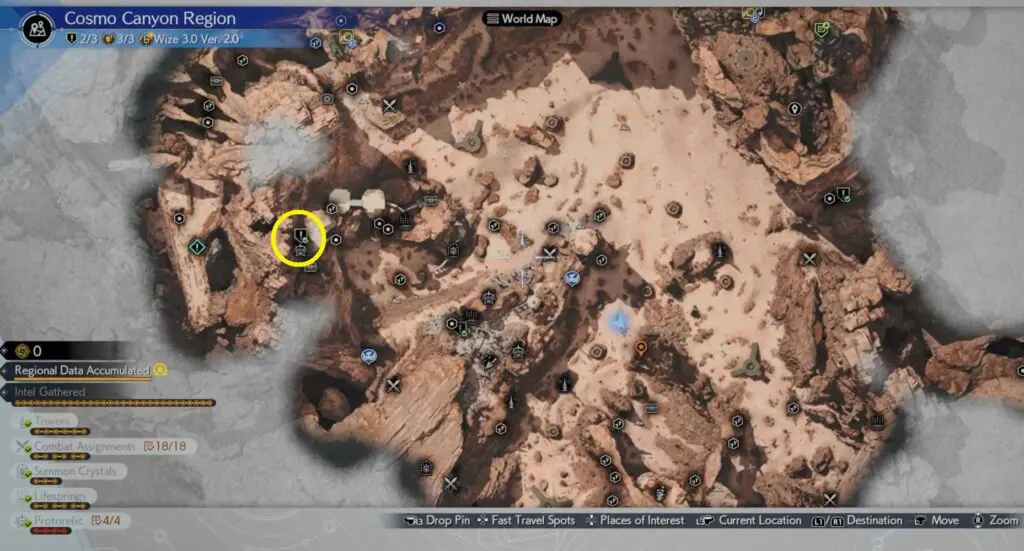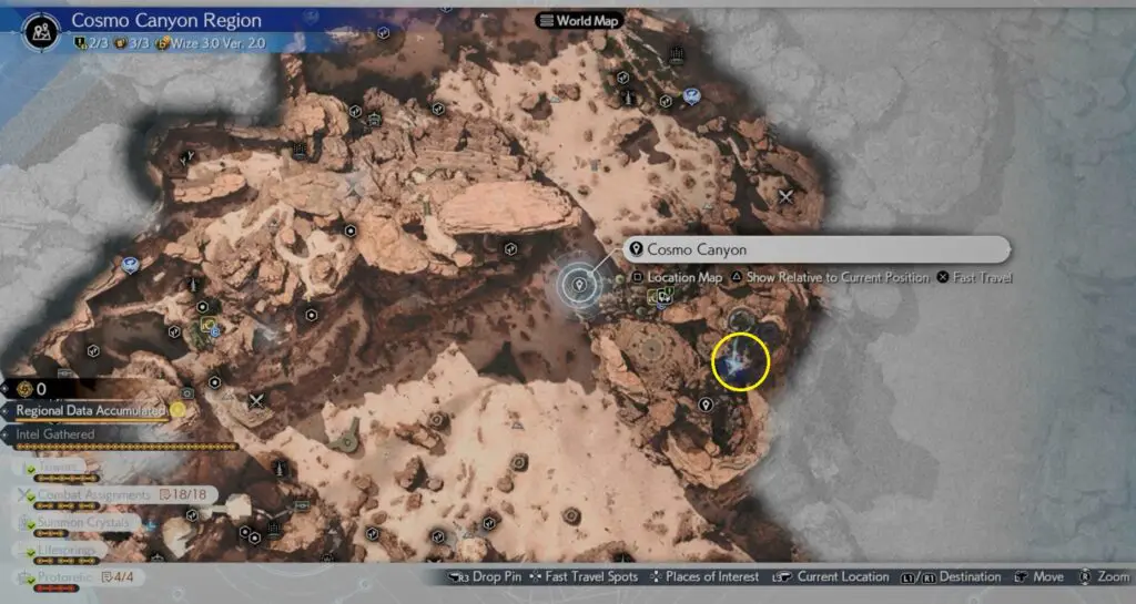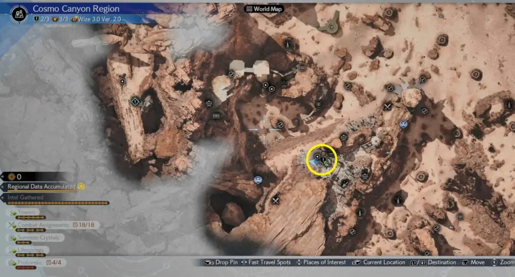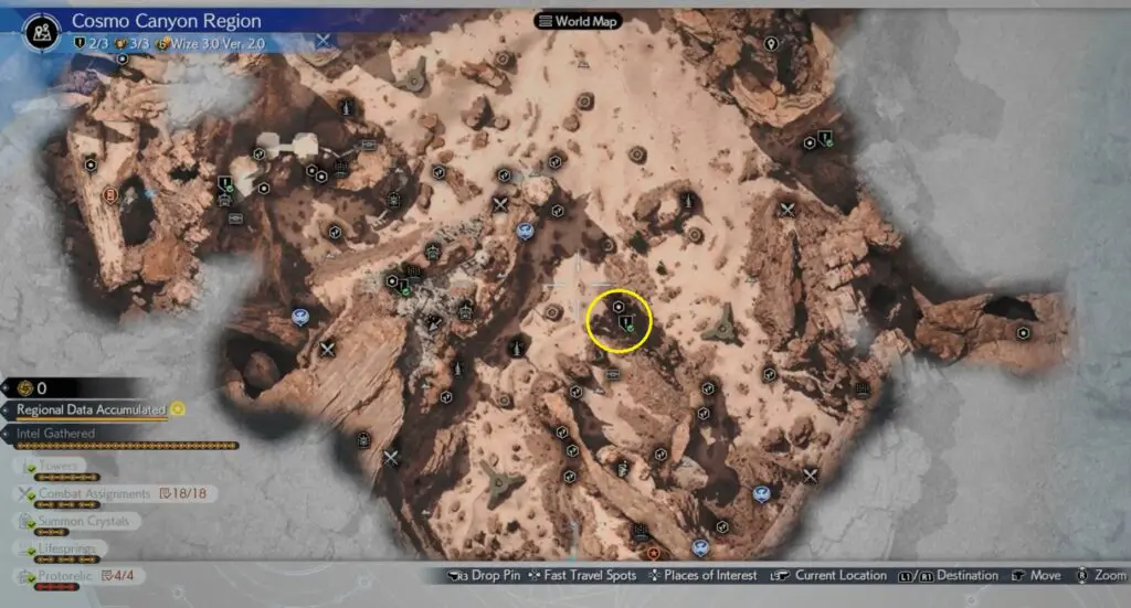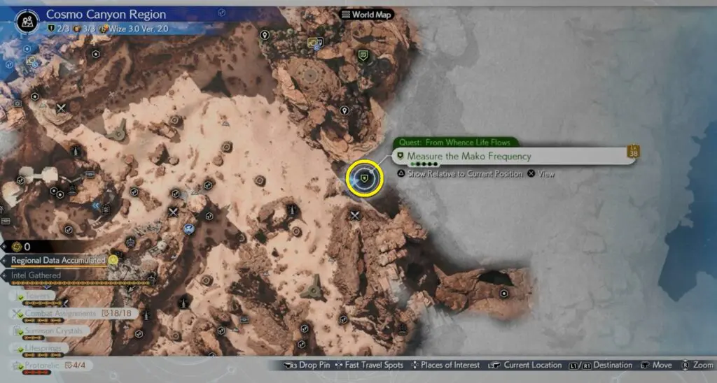 Head to the “Cosmo Observatory” situated in the Cosmo Canyon village to find Bugenhagen (NPC). Speak to him and he will ask for help in locating his misplaced tools and collect measurements of Mako frequencies around the region.