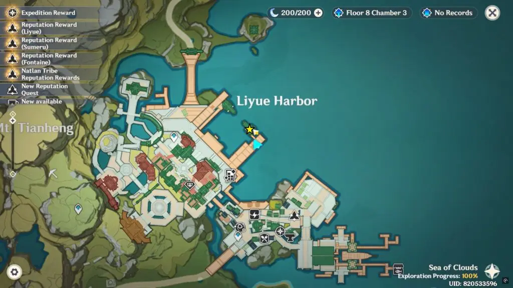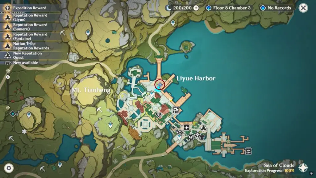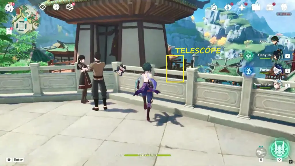The third and last Sightseeing Scope spot is at the far right side of the dock area in Liyue Harbor.
