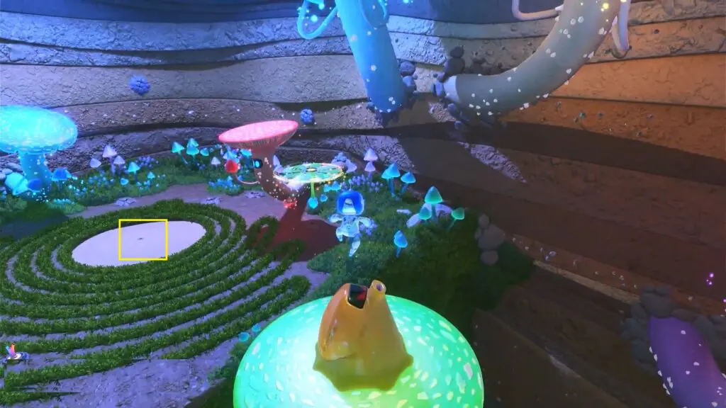 Proceed further in the game until you reach inside a cave after using the dynamite. Inside the cave go to the left side to the bot on top of a large blue mushroom. You can use the platform nearby to reach the top.