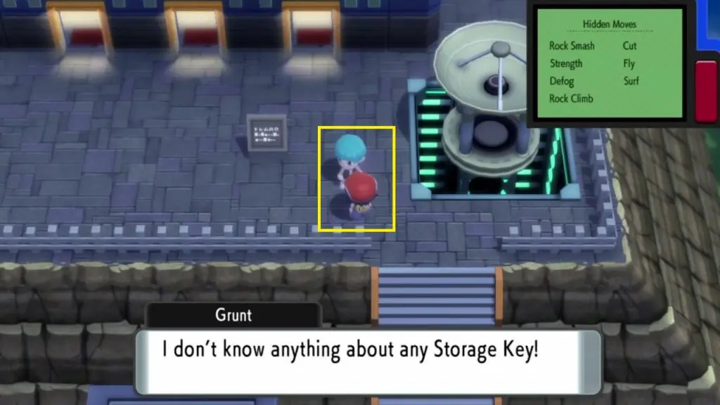 You can get this key only after you have defeated the 7th Gym Leader and received the 7th Gym Badge. Once you have defeated the 7th Gym leader, talk to the Grunt standing in front of the Galactic Veilstone Building as shown in the picture below. After talking to you, he will drop the ‘Storage Key’. Pick up the key.