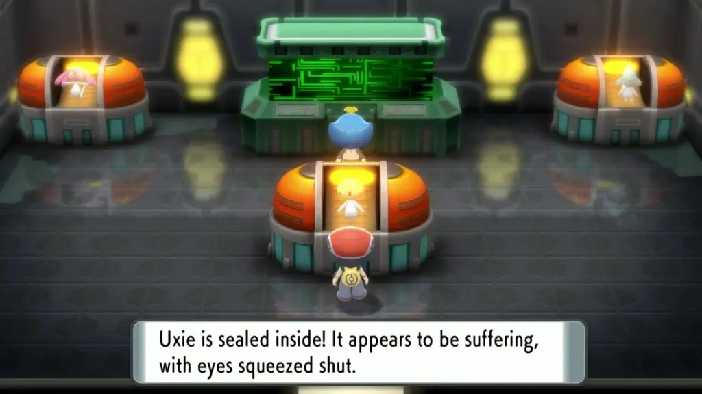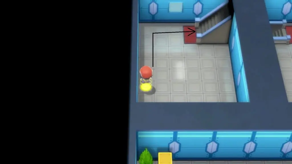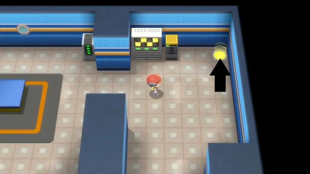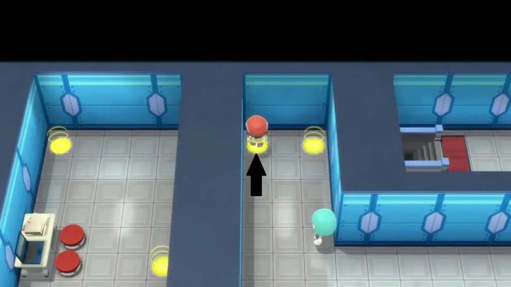 Then proceed forward in a linear path. At the end of the path, you will face another boss. After defeating the boss, push the button as shown below to save the Pokemon.