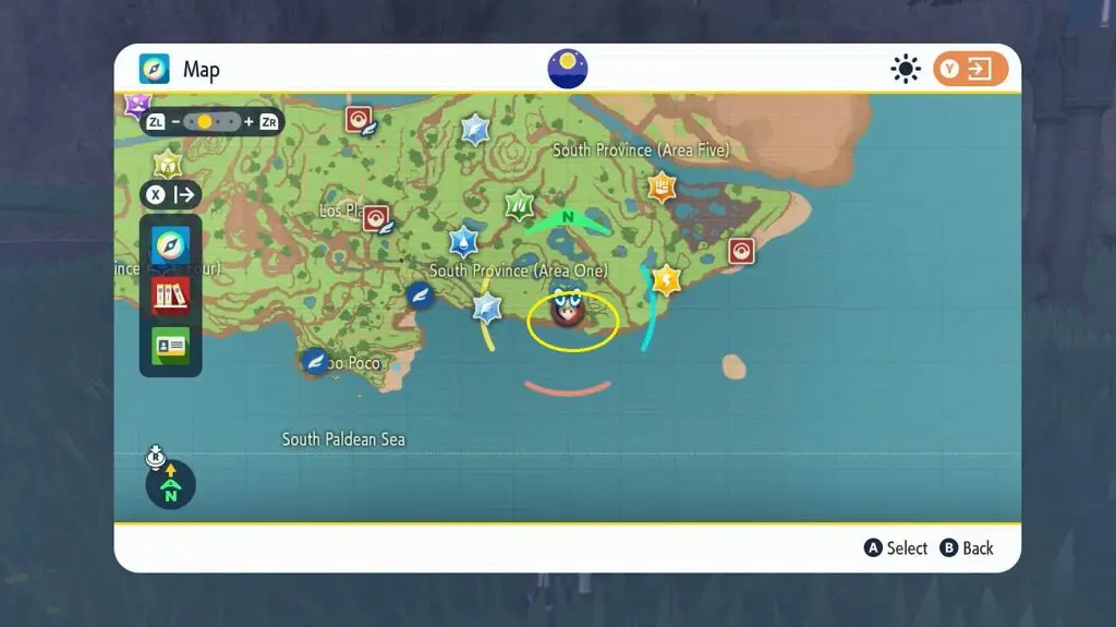 • Ruins: South Province (Area One), South Province (Area Two), South Province (Area Four), South Province (Area Six), South Province (Area Five), South Province (Area Three), West Province (Area One), Asado Desert, West Province (Area Three), East Province (Area Two), Glaseado Mountain [1], Casseroya Lake, Glaseado Mountain [2], North Province (Area One), The Great Crater of Paldea