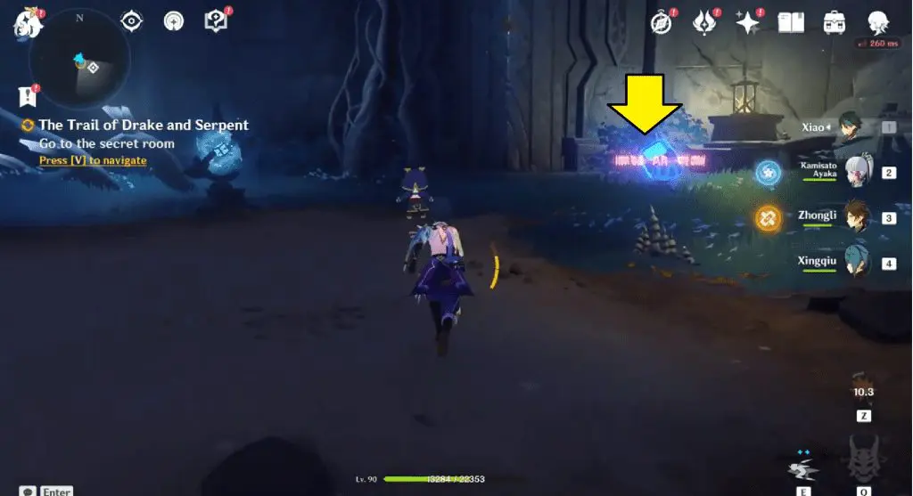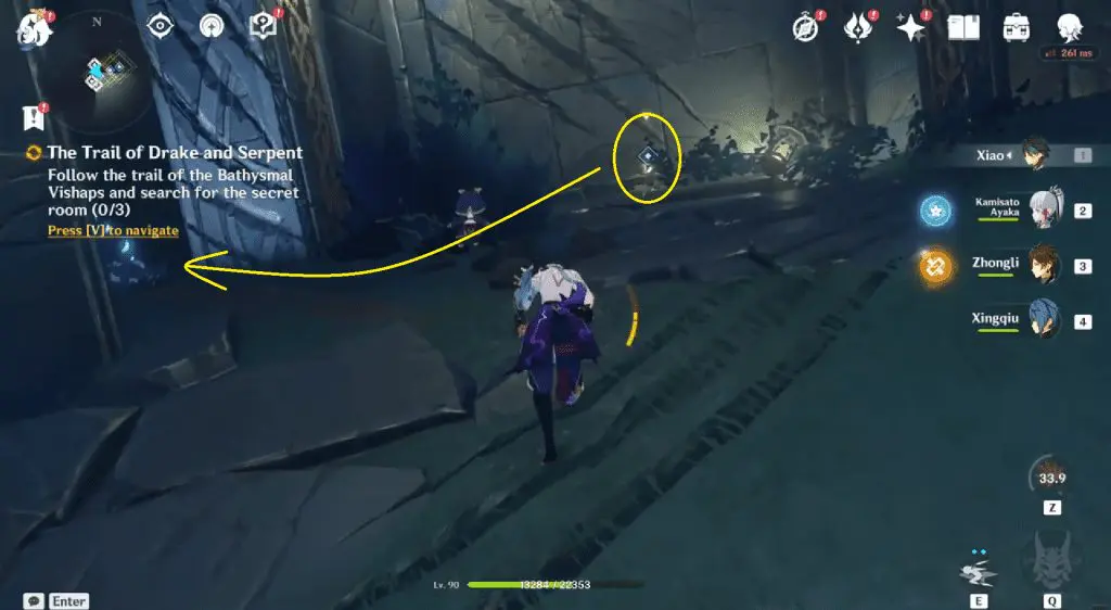 As the subquest start, you will need to head to Evernight Temple and follow the trail of the Bathysmal Vishaps. Glide to the location marked on the map. You will find the entrance along the cliff wall.