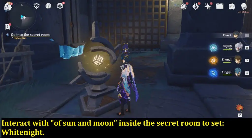 Step 1: Interact with “of sun and moon” inside the secret room to set to Whitenight.