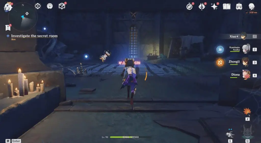 Step 3: Interact with the mechanism on the left, to drop the iron grilled door.