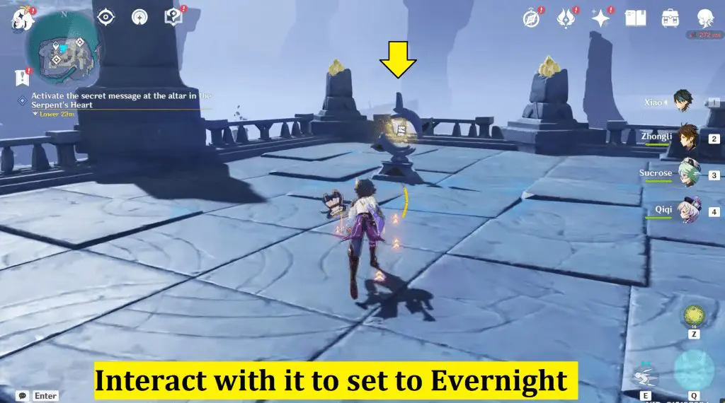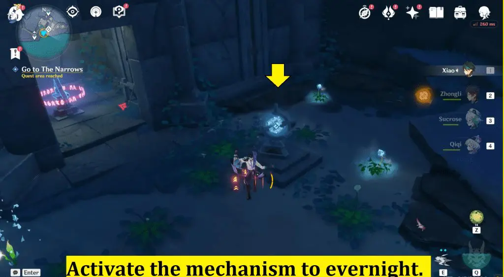 After activating the Evernight, enter into the altar and interact with the Investigate spot. This will prompt a cutscene and the symbols on the ground will light up.