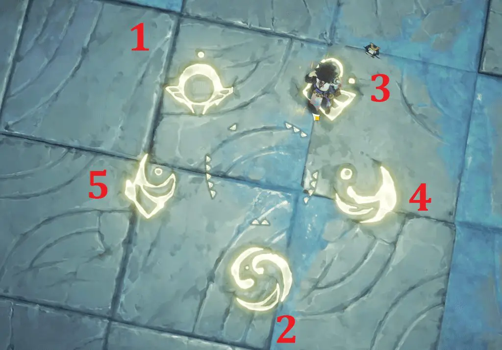 Each symbol is marked with dots. These dots indicate the order in which the transparent walls should be activated. All you have to do is to cross the transparent walls from the inside of the altar in the same order as the symbols on the ground.