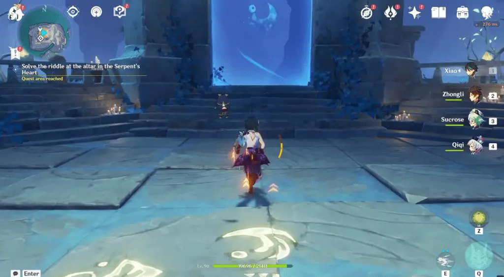 As the quest starts follow the quest marker to the altar in the Serpent’s Heart. Either run past the monsters or eliminate them along the way.