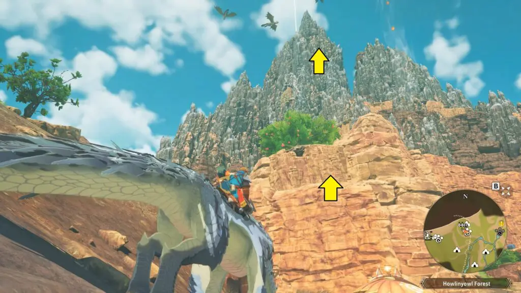 As you make your way up, keep an eye out for an upward shaft of wind. Use this wind current to glide higher and reach the peak of the mountain.