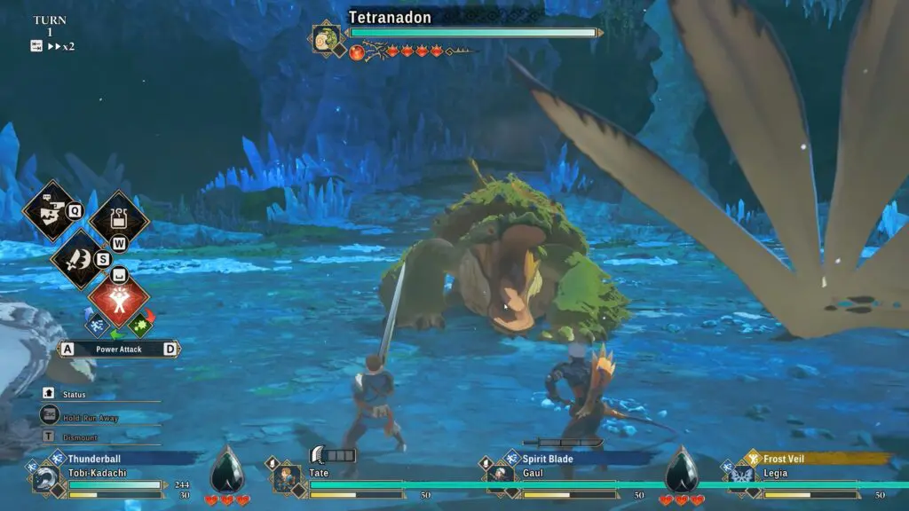 You will land inside the Frozen Grotto. From the entrance, head south and continue forward until you reach a crossing. Take the left path at this first junction and follow it deeper into the cave. As you move ahead, you will soon come across the lost villager, who is being attacked by a Tetranadon.