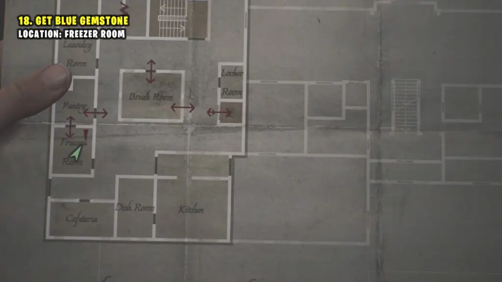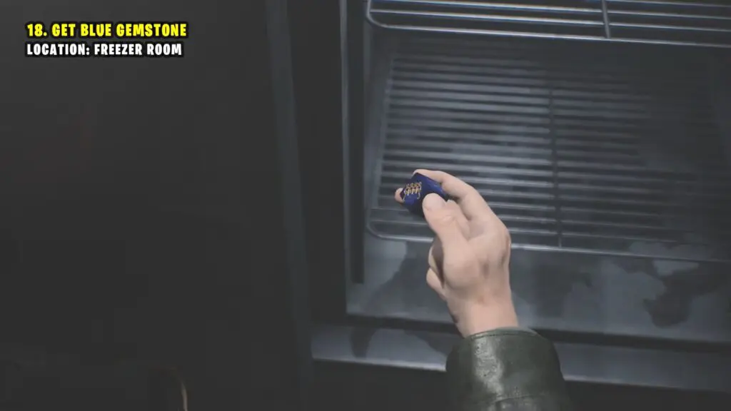 Go to the freezer room via the Pantry and collect the Blue Gemstone from a fridge.