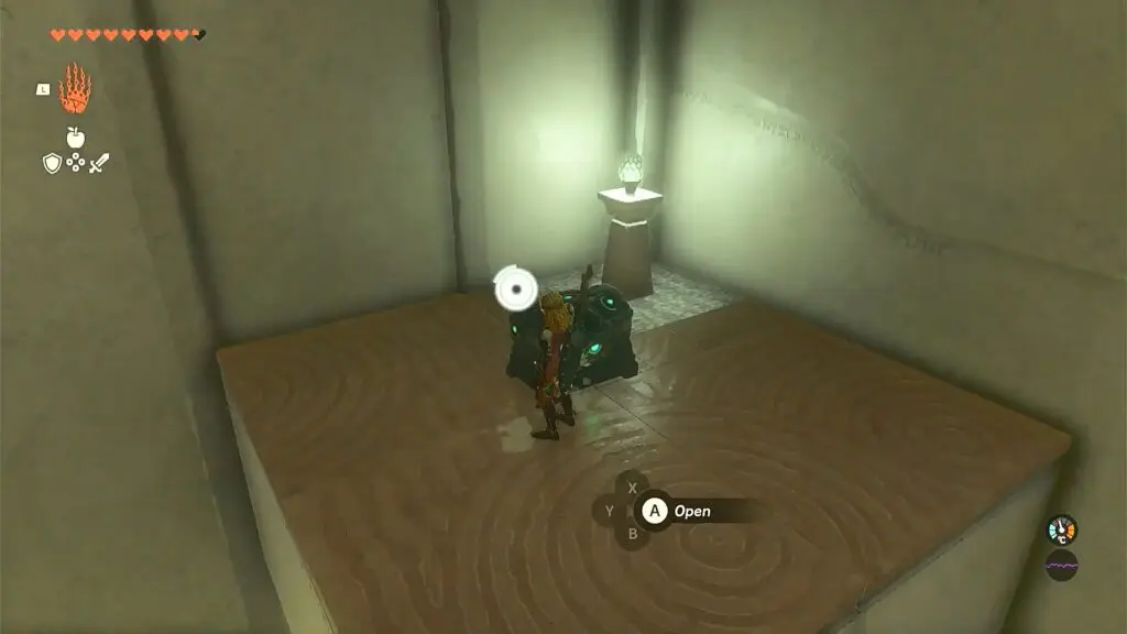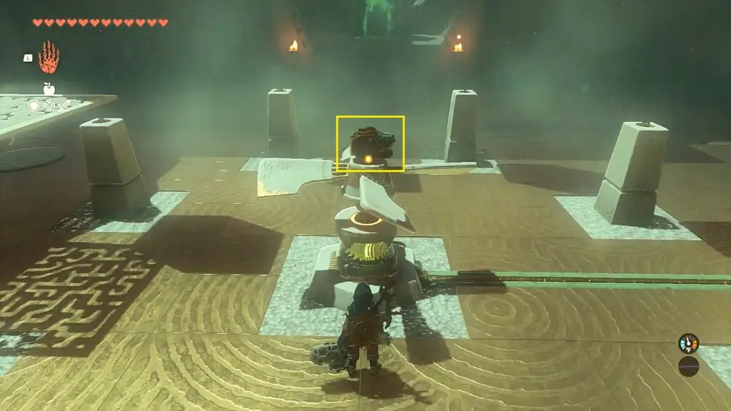 As you enter the shrine, grab the fan and attach it to the shaft as shown in the picture below.