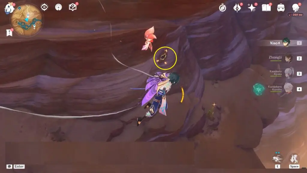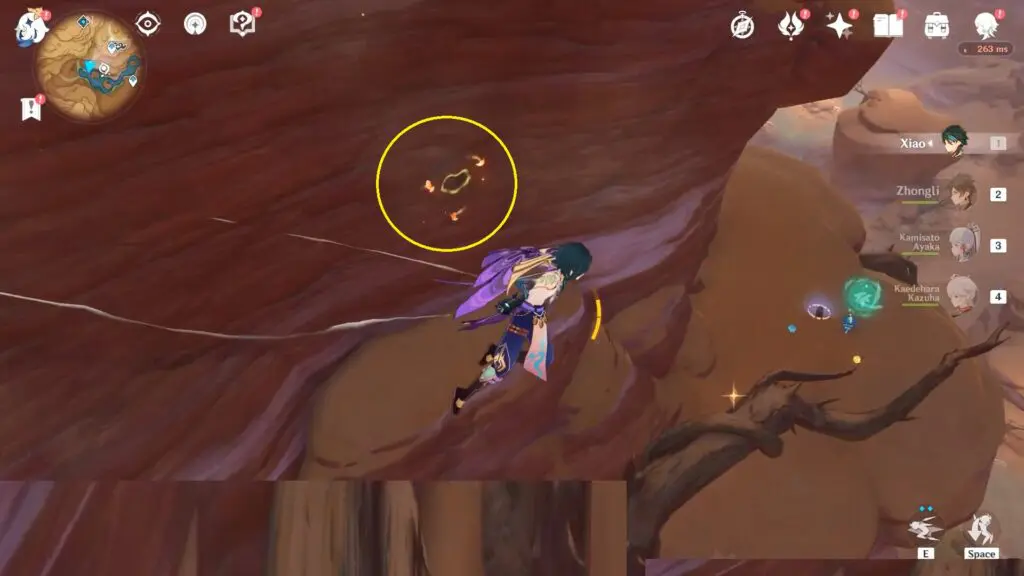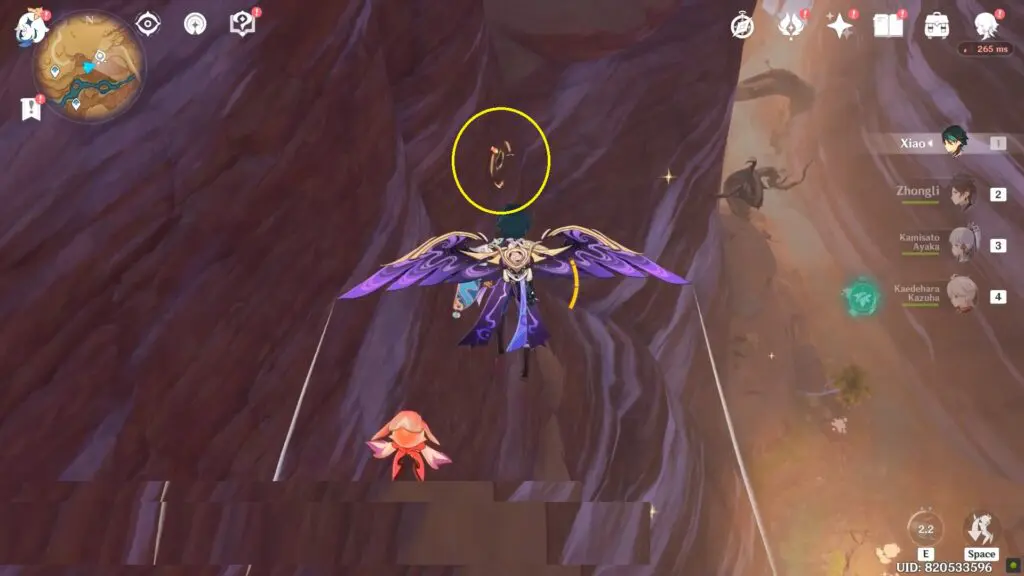 On the cliff wall, glide down to the west from the teleport waypoint.
